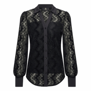 blouse heeft een knopenlijst middenvoor en tot boven knopen