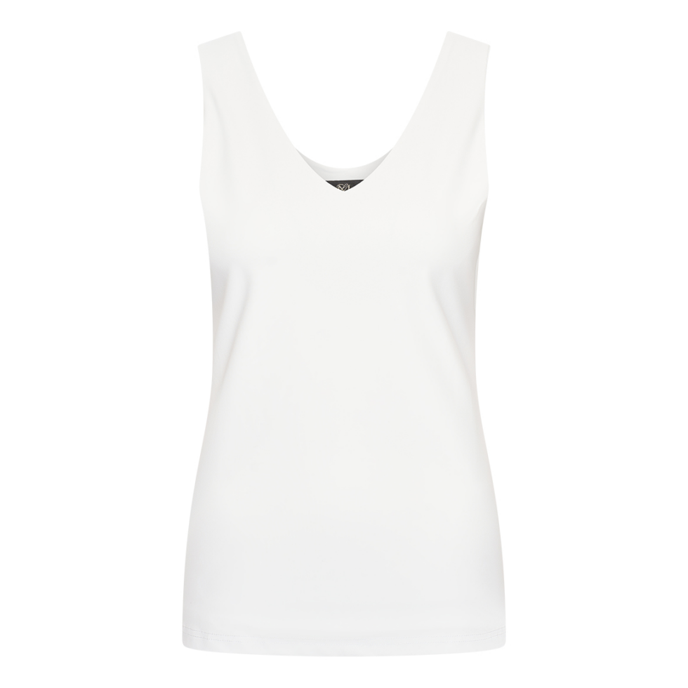 de top is slanke, mouwloze met voorkant V-hals en achtekant rond